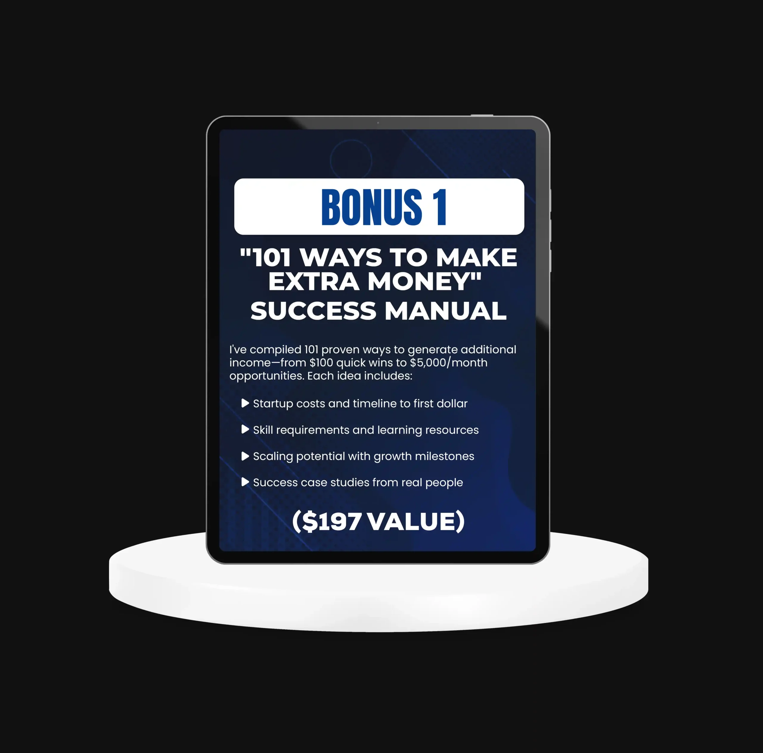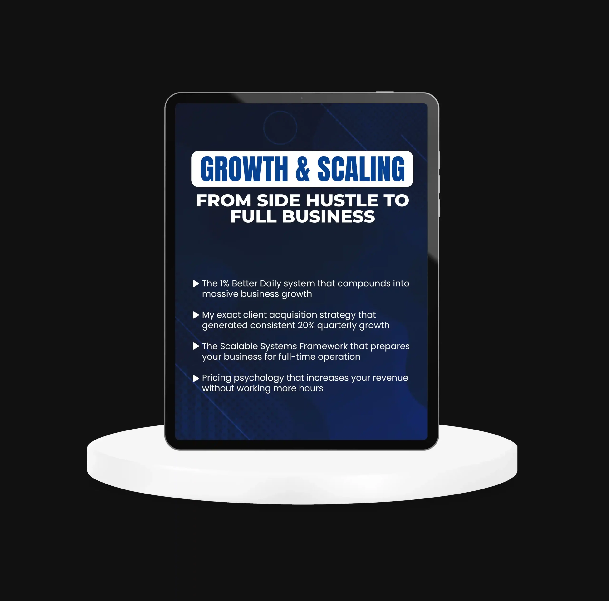 This comprehensive system includes 7 implementation-focused modules that walk you step-by-step through the entire process of building, growing, and transitioning to a side hustle that completely replaces your current income.