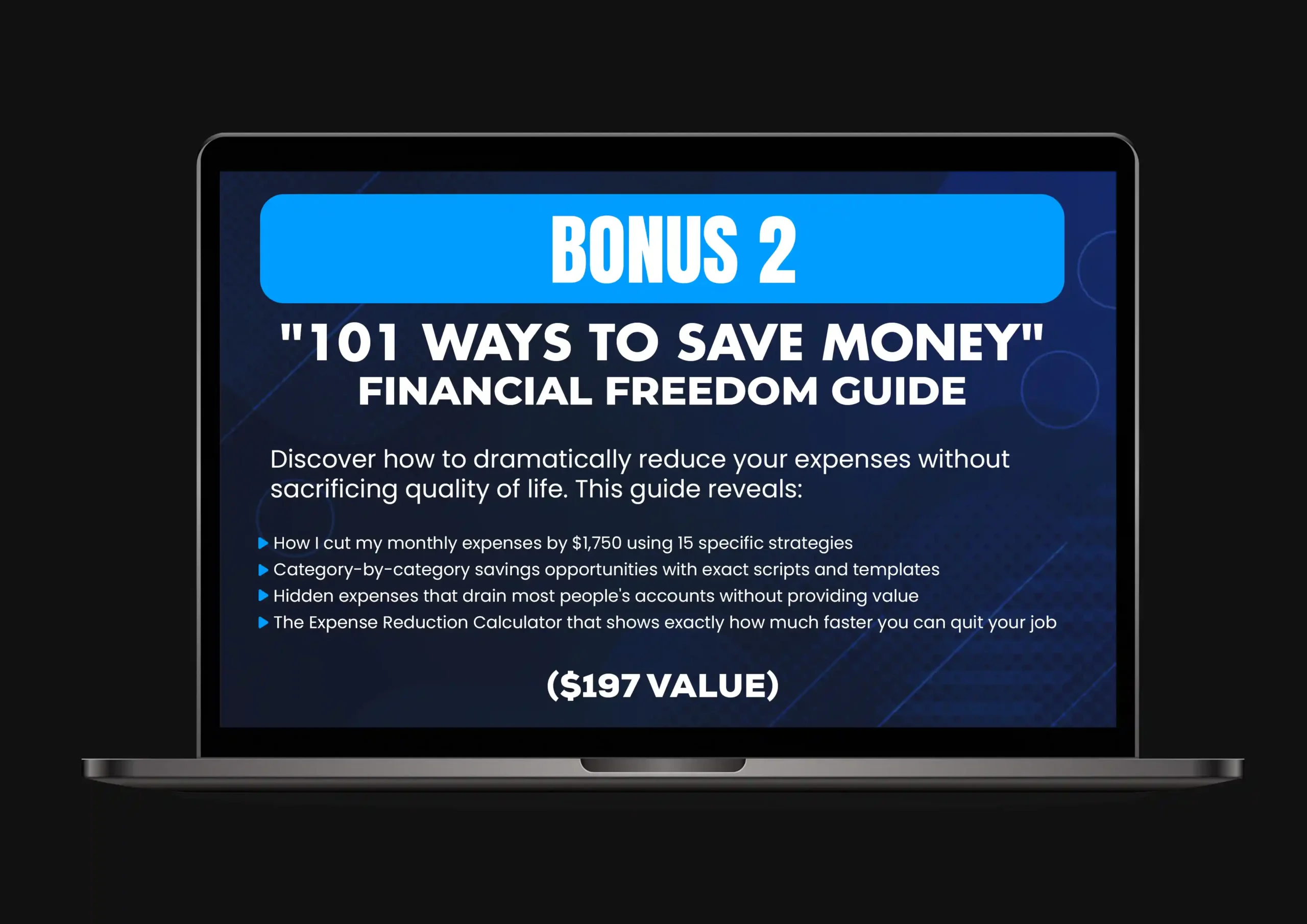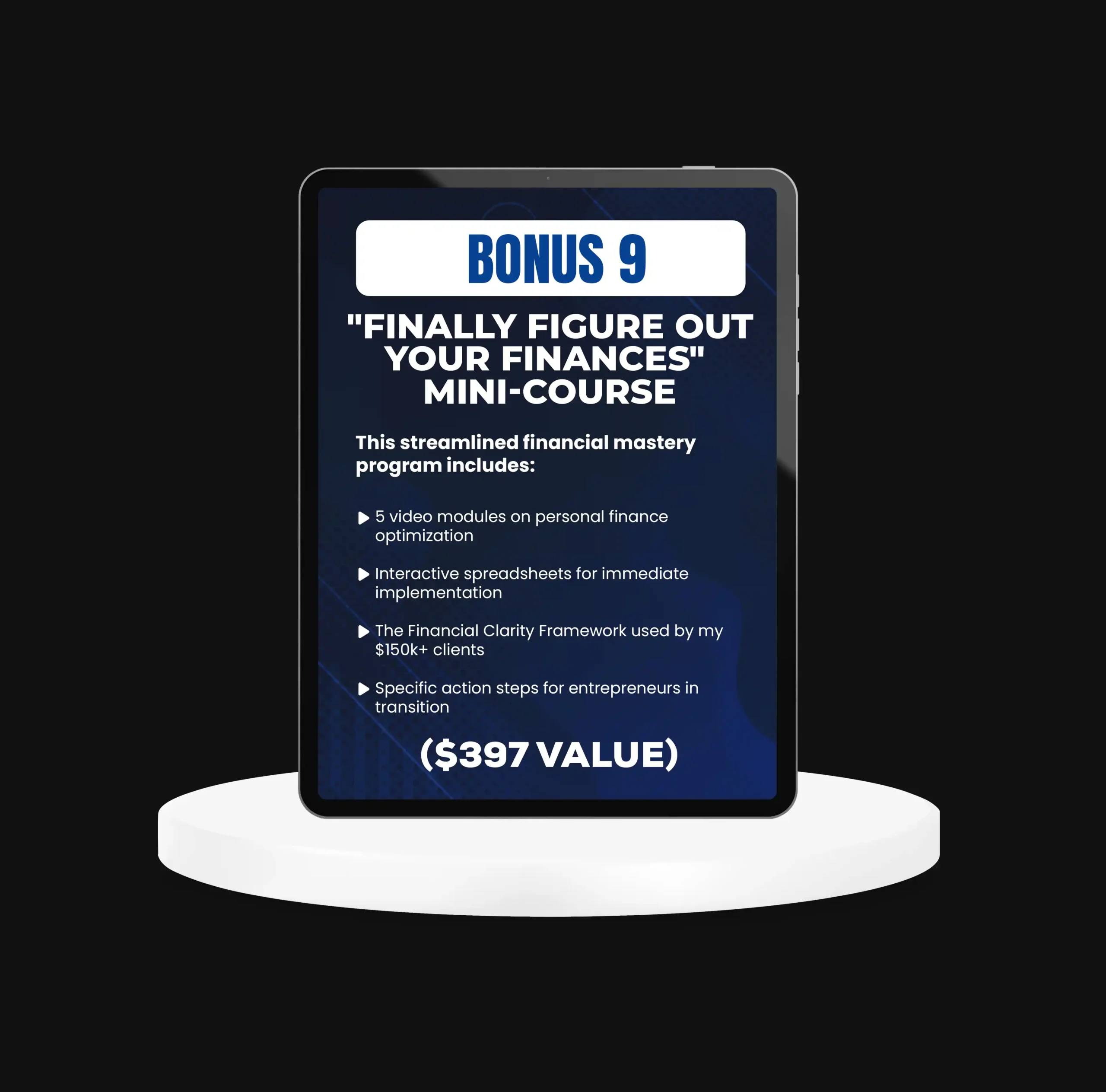 Think of this as your financial foundation. While the main Freedom Blueprint focuses on building your business, this bonus ensures your personal finances are structured to support your transition.