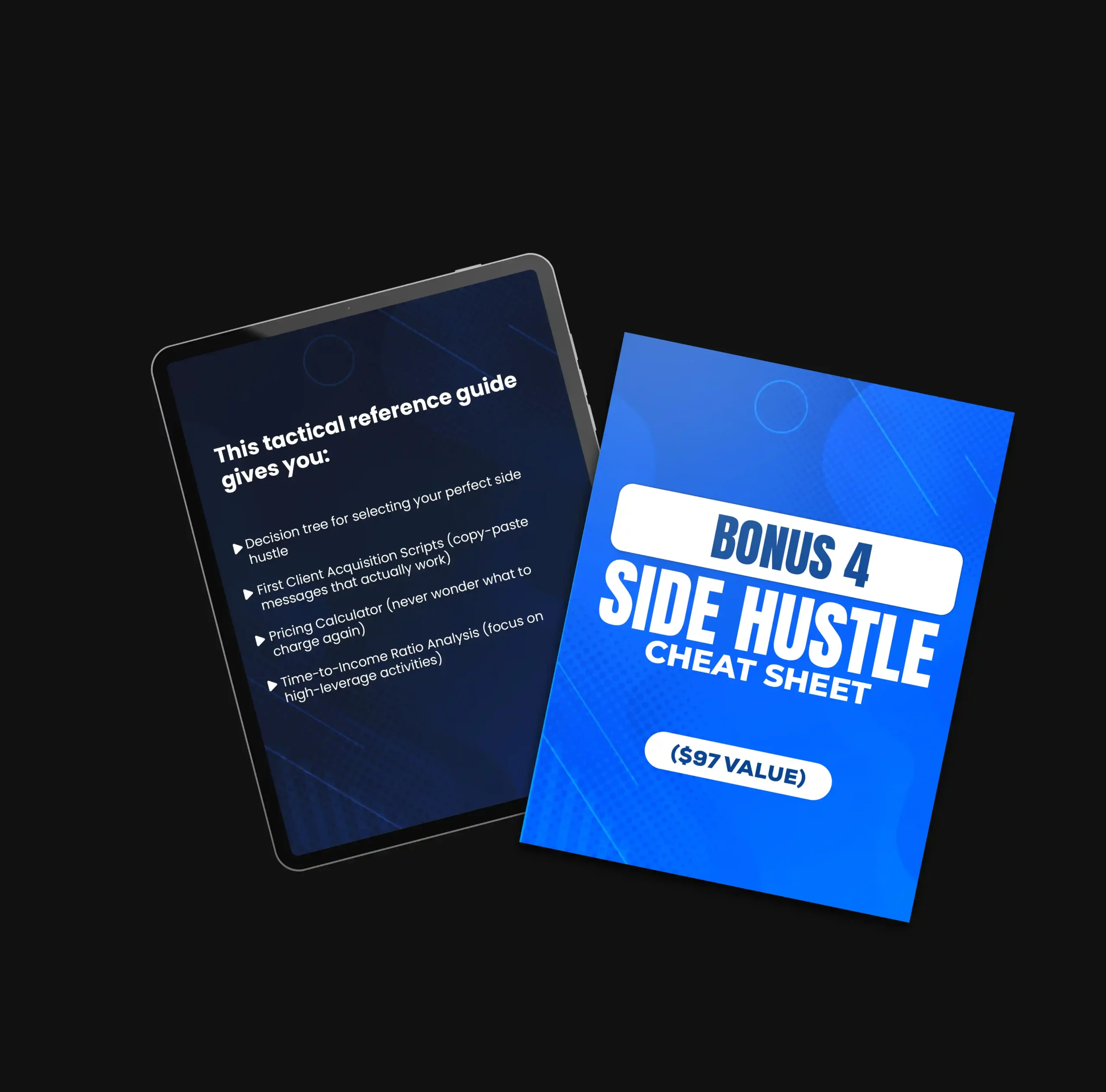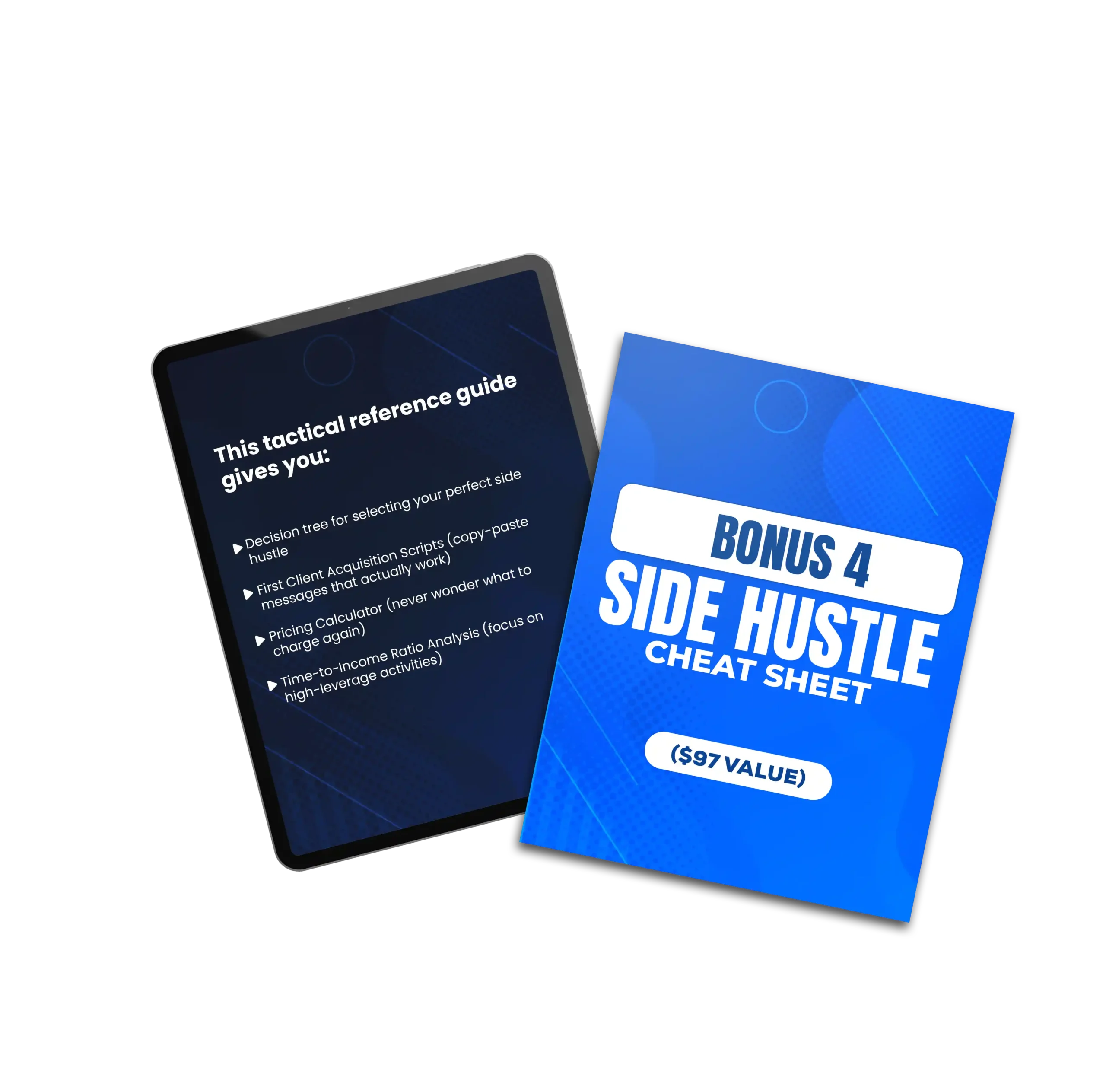 This is your quick-start accelerator. When you need immediate answers to specific side hustle questions, this cheat sheet cuts through the confusion and gives you clear direction.