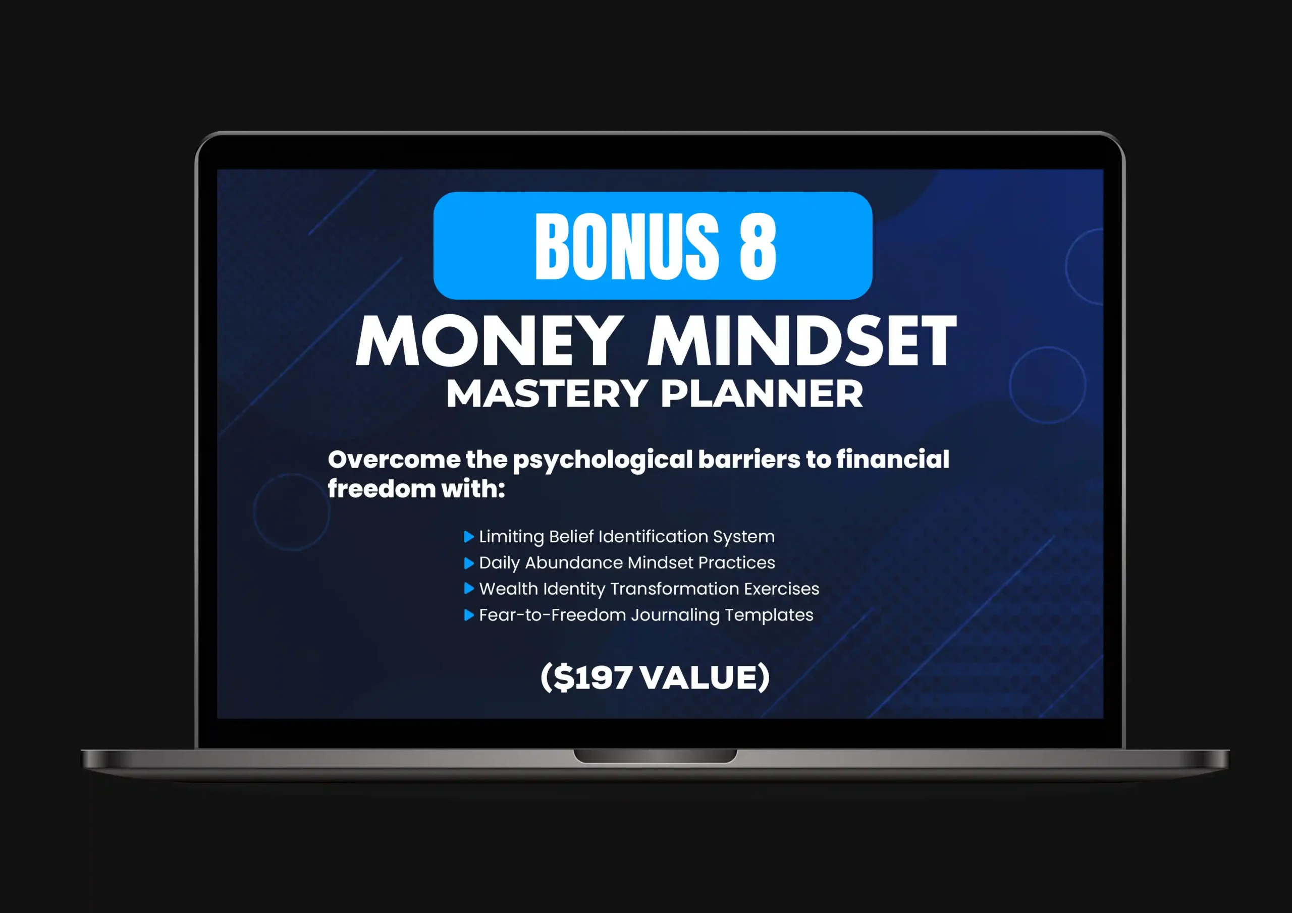 This addresses the hidden obstacle most courses ignore. The greatest barrier to your financial freedom isn’t practical—it’s psychological. This planner transforms your relationship with money at the identity level.